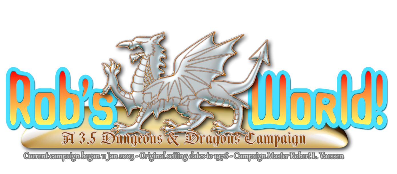 Where Now - This is a listing of places in the Rob's World! Face-to-Face (f2f) D&D® campaign. This listing includes places the characters have visited (See the Journals). The locations of adventures in the realms. Caves, Forests, Dungeons, Towns, Hamlets and Keeps. The settings of high adventure. Tunadholm's last stand, the bridge over Wintercloak, The Cube of Nth. Those places which will live on in the memories of our characters. This listing includes locations from the previous characters, as it is assumed that they (the previous group of adventurers) regaled the current group of characters (some of them) with tales of their adventures, which were then passed down to other characters by word of mouth or in the form of journal writings.