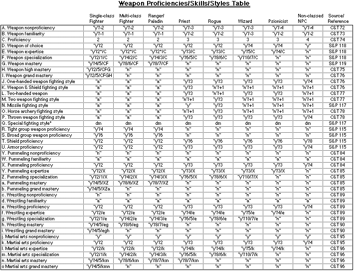 * A weapon skills & proficiencies chart/wpnskls.gif