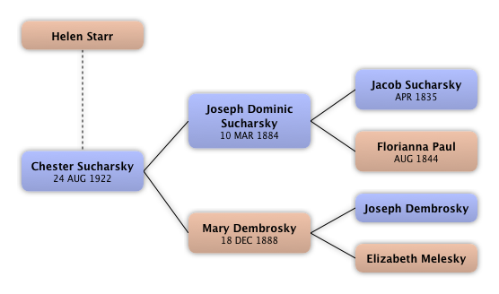 Chester Sucharsky | Husband | 24 AUG 1922 | WI, USA | 07 JAN 1997 | MO, USA |