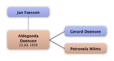 Aldegonda Doensen | Wife | 22 JUL 1839 | Meijel Holland, Netherlands | 08 AUG 1874 | |