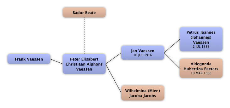 Badur Beate Peter Elisabert Christiaan Alphons Vaessen Jan Vaessen Petrus Joannes (Johannes) Vaessen Aldegonda Hubertina Peeters Wilhelmina (Mien) Jacoba Jacobs Frank Vaessen
