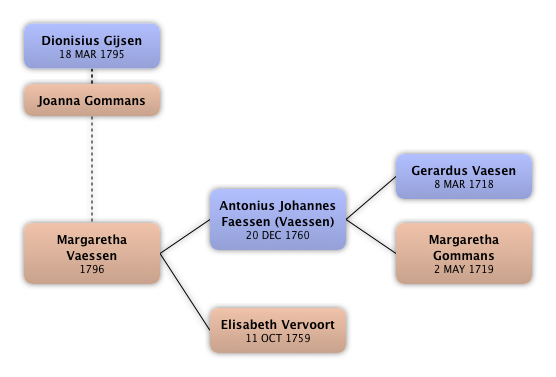 Dionisius Gijsen Joanna Gommans Margaretha Vaessen Antonius Johannes Faessen (Vaessen) Gerardus Vaesen Margaretha Gommans Elisabeth Vervoort