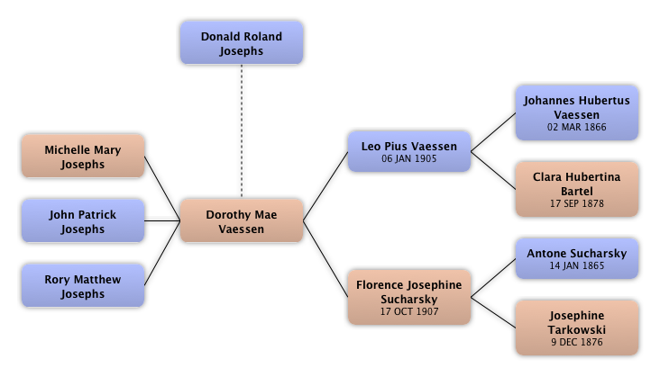 Donald Roland Josephs Dorothy Mae Vaessen Leo Pius Vaessen Johannes Hubertus Vaessen Clara Hubertina Bartel Florence Josephine Sucharsky Antone Sucharsky Josephine Tarkowski Michelle Mary Josephs John Patrick Josephs Rory Matthew Josephs