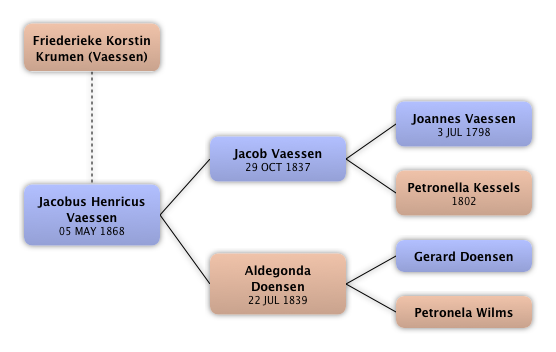 Jacob Vaessen | Father-in-law | 29 OCT 1837 | Maasbree, Holand (Netherlands) | 08 JAN 1868 | Maasbree, Holand (Netherlands) |