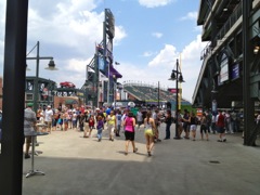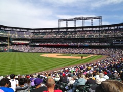 On the 17th of May, 2012, Kim and I joined a few coworkers for a poorly attended team building event. An annual event that will likely end this year (As Tim leaves us, his traditional 'Game Day' team build will likely fall by the wayside). Kim and I joined Tim (his family), Matt and Gary for and afternoon at the ballpark (Coors Field in Downtown Denver, CO). A perfect day to enjoy a baseball game. The weather was slightly overcast and the temperature was perfect (upper 70s). Kim and I took time off work (as our employers didn't pay for this 'unofficial team building event').