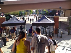 We left work at 1000, drove straight home and changed for the game. I grabbed the tickets, my wallet and the iPhone. We forgot to bring an umbrella, but that didn't matter. Oh yeah, don't forget the sun screen. Living in Colorado is as close to living on the sun as you can get, so us white folk need plenty of that sun screen! We left the house and drove to Nine Mile station.