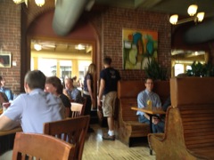 We arrived approximately 10 minutes early. Perfect timing. Good thing we took the train. Otherwise we would have fought the traffic arrived later than we did and we would have paid way too much for parking. I'd rather take the train. We arrived early, found our seats and said hi to Time. We were a little disappointed that more coworkers didn't show up, but everybody's got things to do on a beautiful day like this one.
