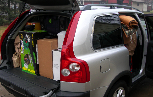 It took considerable effort, but I was eventually able to fit all our loot into the Volvo.