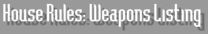 | Two-Handed Melee Weapons | Cost | (S) | (M) | (L) | Crit. | Rng. | Wt. | Type | Parry | M.Str | M.Dex | Fumble | Notes | Reference |